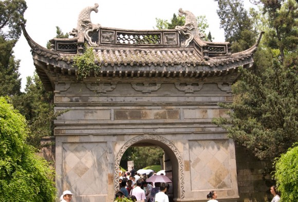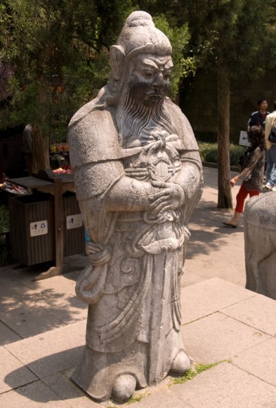 En intressant sak med Yue Feis tempel är att där finns fyra järnstatyer som föreställer hans förrädare. Dom hette Qin Hui, Wang Shi, Moqi Xie och Zhang Jun. Dom står i stark kontrast till den lojale generalen Yue Fei. Statyerna står knäböjda med bakbundna händer, och tanken är att besökare ska uttrycka sin avsky mot dem, efter att ha hört hur de förrådde Yue Fei.